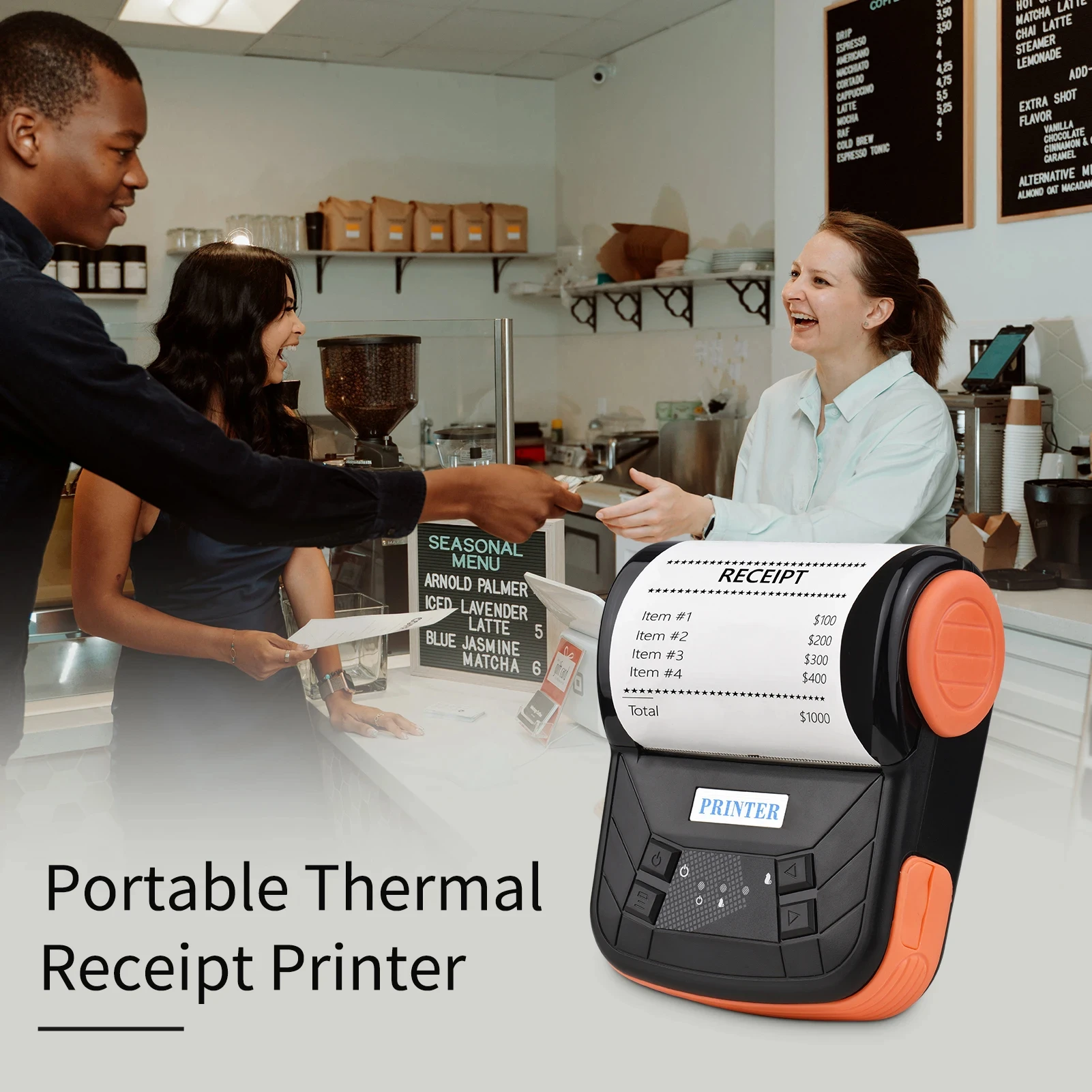 Built-in 2280mAh rechargeable battery, can be continuously printing up to 3hrs, print receipts at any time.