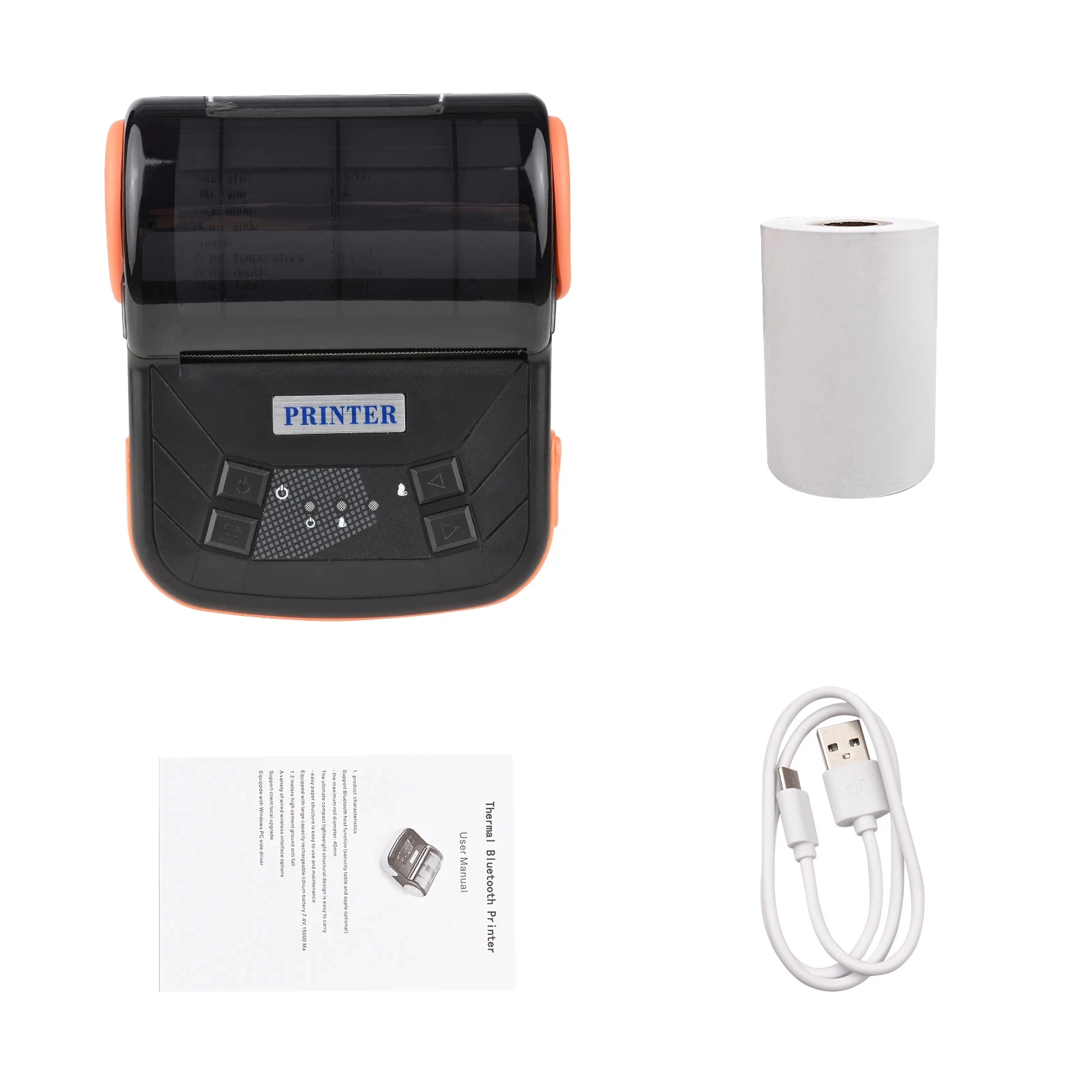 Portable handheld BT thermal receipt printer, mini and lightweight, easy to carry. Support BT4.0 and USB cable connection, compatible for iOS, Android, Windows system.